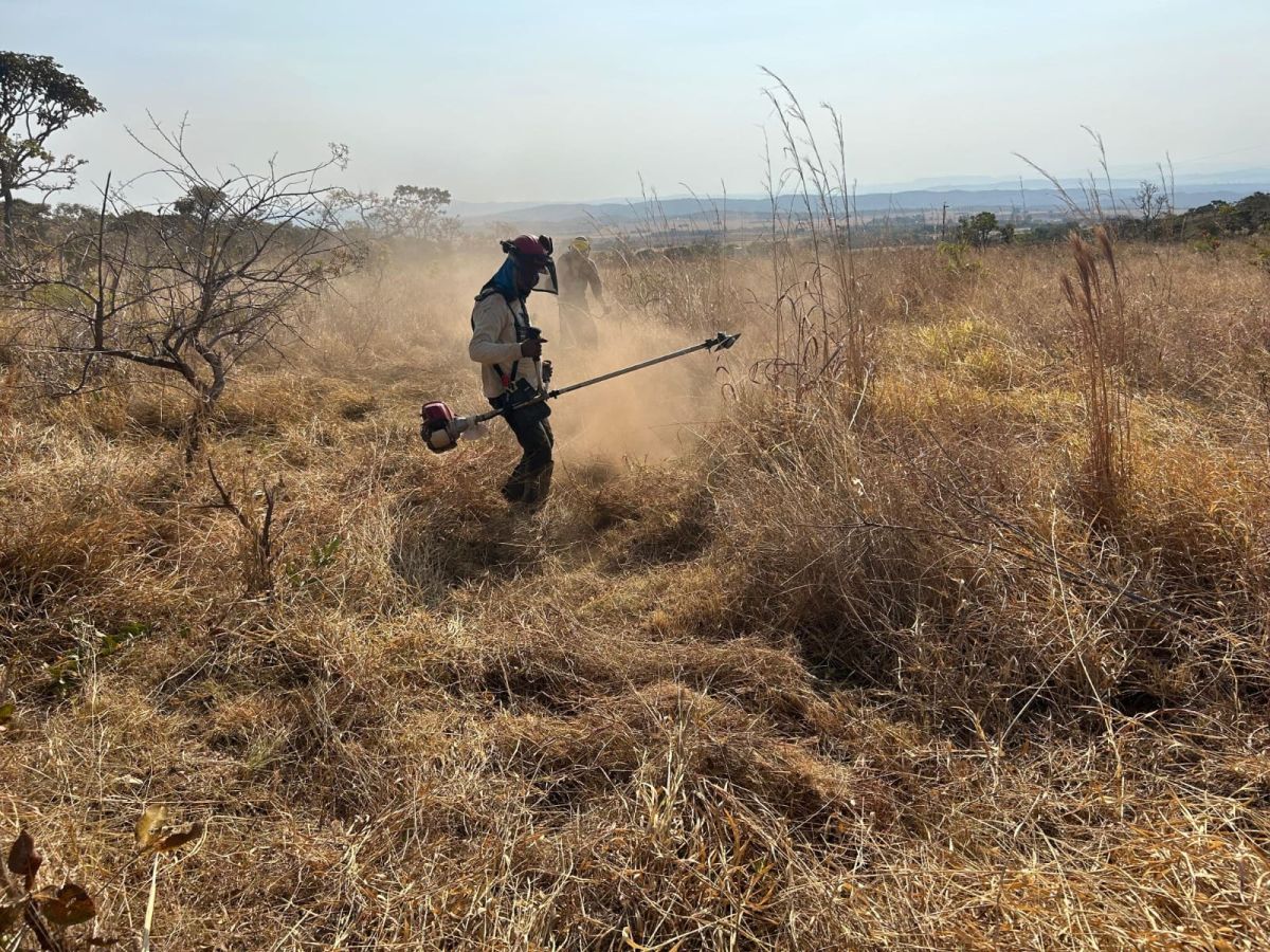Técnico em restauração do projeto, Henrique Santos explicou que o trabalho foi realizado em etapas. “Preparamos o solo com o arado e agora estamos controlando as Espécies Exóticas Invasoras. Em parte da área, utilizamos herbicidas, e em outra, devido a proximidade a um campo úmido, realizamos a roçada para evitar a competição entre as plantas nativas e as invasoras”, explicou o técnico em restauração. A ação visa preparar o terreno para o plantio de espécies nativas do Cerrado, como também garantir que essas plantas possam se desenvolver.
