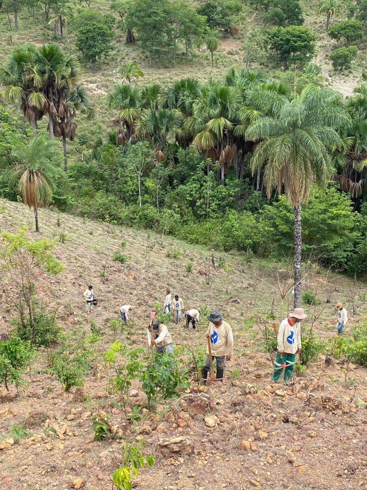 A Gerente de Restauração do projeto, Murielli Garcia, ressaltou a diversidade dos solos no processo de plantio, explicando a escolha de diferentes métodos. "Devido às características variadas das áreas, estamos empregando diversos métodos de plantio. Optamos pelo plantio manual em razão das dificuldades de acesso em algumas regiões, bem como pela presença de vegetação nativa. Nessas áreas, abrimos covetas e realizamos o plantio de forma manual. Em locais mais abertos, adotamos o método mecânico, utilizando um trator acoplado a uma calcareadeira”, disse.