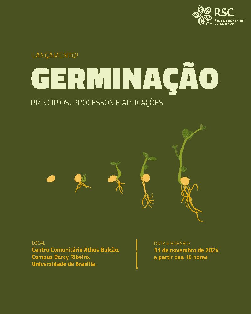 A Rede de Sementes do Cerrado (RSC) em parceria com o Universidade de Brasília (UnB) realiza na próxima segunda-feira, 11 de novembro, no Centro Comunitário Athos Bulcão, na Universidade de Brasília (UnB), o lançamento do livro Germinação: Princípios, Processos e Aplicações. Organizado pelo professor Fabian Borghetti, com a colaboração de mais de 50 autores de diferentes instituições e regiões do Brasil, o lançamento ocorre durante o 74º Congresso Nacional de Botânica. O evento é um marco para a ciência botânica e a conservação ambiental, especialmente no contexto do Cerrado, bioma fundamental para o equilíbrio ecológico da região central do Brasil.