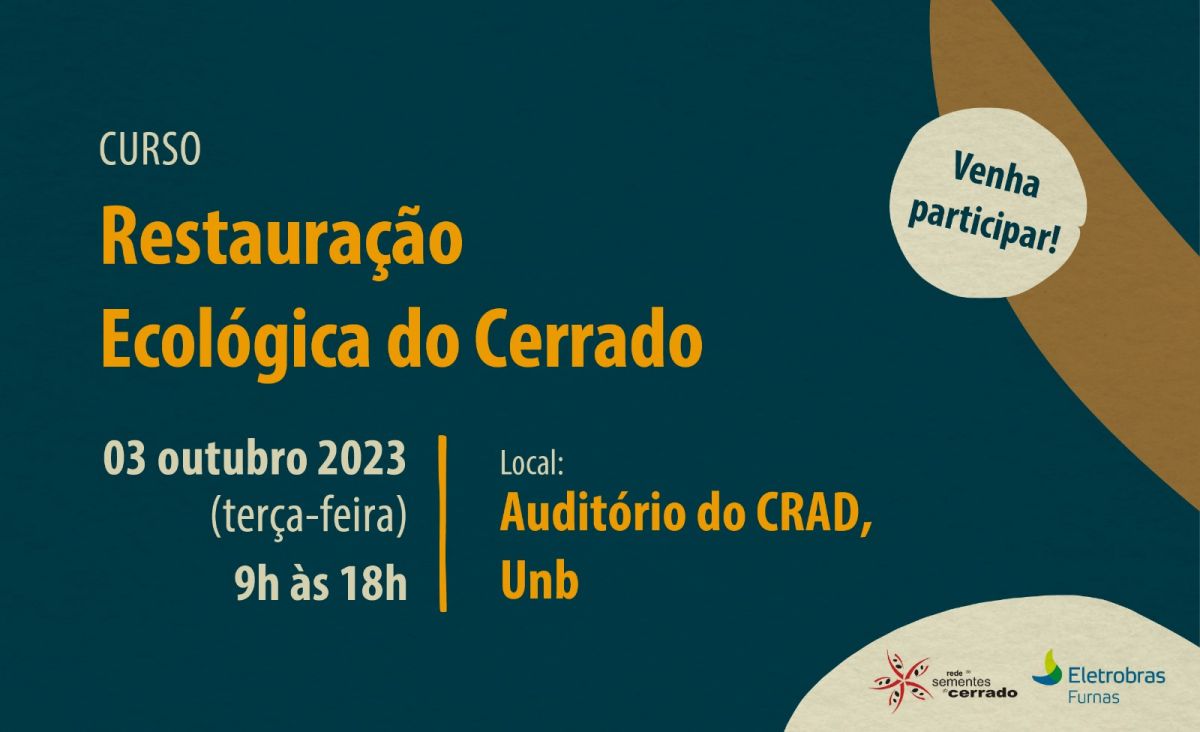 Com o objetivo de discutir sobre a restauração do Cerrado, com ênfase na técnica da semeadura direta, a Rede de Sementes do Cerrado (RSC), promove no dia 03 de outubro, o curso de Restauração Ecológica do Cerrado. Gratuito, o evento acontece das 9h às 18h no auditório do Centro de Recuperação Ambiental (CRAD) da Universidade de Brasília (UnB).